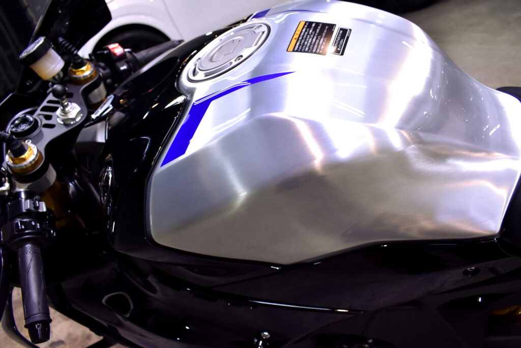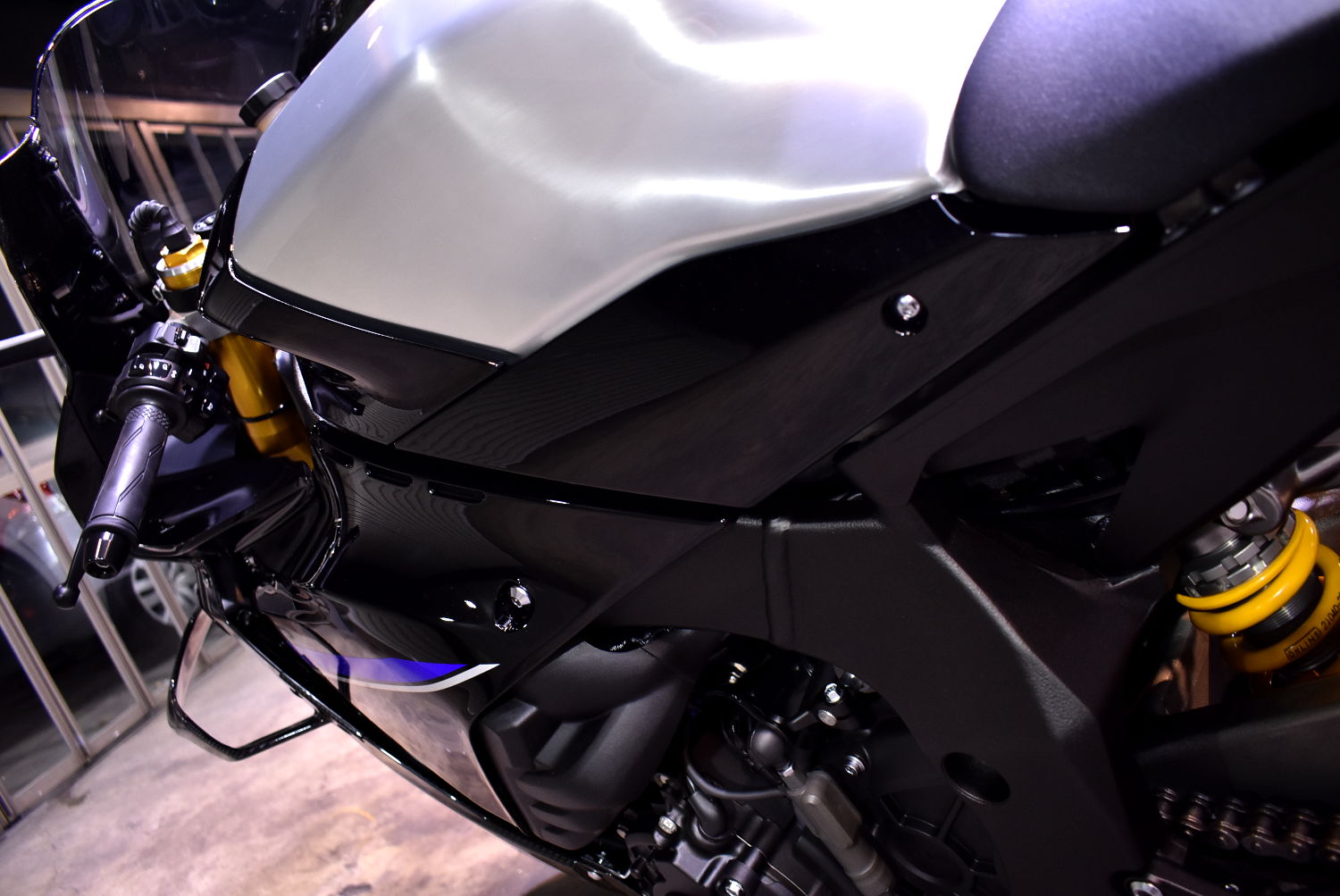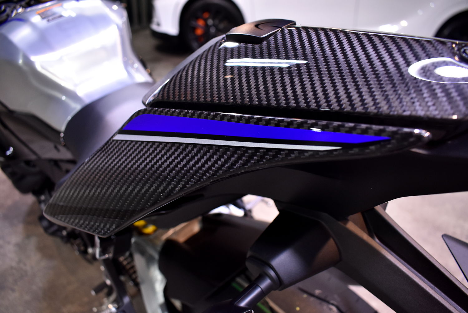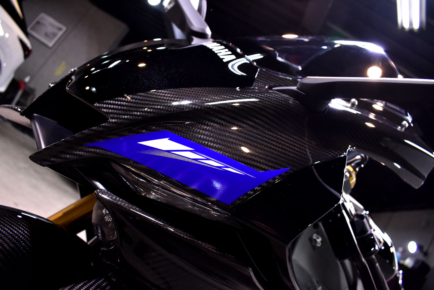 ライダーとマシンの一体感、操作を通じて味わう爽快感を追求した「人機官能」に磨きをかけたYZF-R1、最新の電子制御技術、高性能エンジン、そして洗練されたデザイはまさに「究極のサーキットマシン」。2025年モデルのYZF-R1は特徴的なフロントフェイスは大型ウイングレットを備えて一新。上級グレードのR1Mは、カーボン素材とブラックカラーを基調に、アルミ製燃料タンクにバフ掛けした上からクリア塗装を施した外装はとても高い所有欲を満たしてくれます。今回はそんな特別な一台にリボルトプロ・エクストリームの施工事例をご紹介いたします。