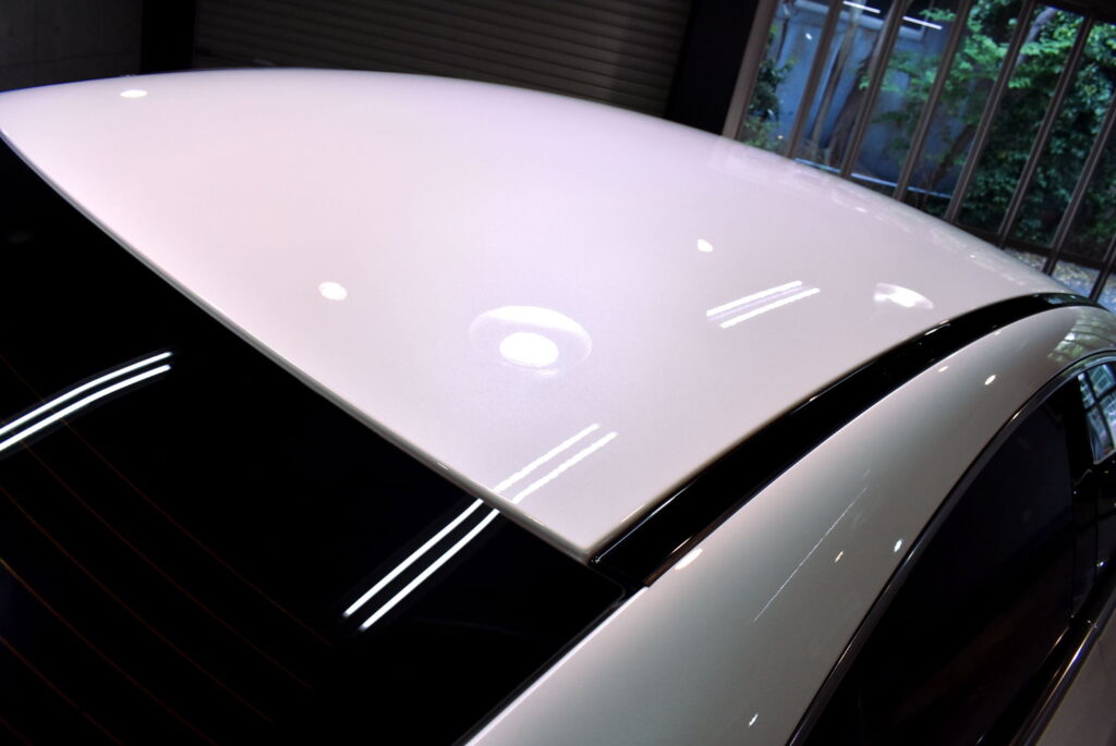 下地処理後もう一度ボディを綺麗に洗浄し、水分を十分に乾燥させて準備を整えます。ガラスコーティング【リボルトプロ】は長年当グループのシグネチャーコーティングとして君臨していた高級コーティング剤であり、高い保護力を誇示しています。膜厚感もあるので、下地処理で美しくなった時以上の美観向上にも貢献します。