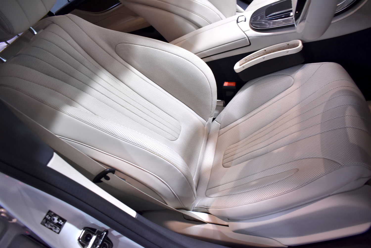 また、内装コーティングもご依頼頂いております。ホワイト系のレザーが高級感を醸し出すとても素敵な内装ですが、このカラーは汚れが目立ちやすい弱点もございます。外装と違って水をかけてシャンプーで洗うということもできないため、汚れを付きにくく、また落としやすい状態にすることが、美観を長く保つポイントとなります。内装コーティング剤は、レザーの内部にまで浸透して保護するため、防汚力や汚れてしまった後の汚れ落ちにも非常に優れた性能を発揮します。