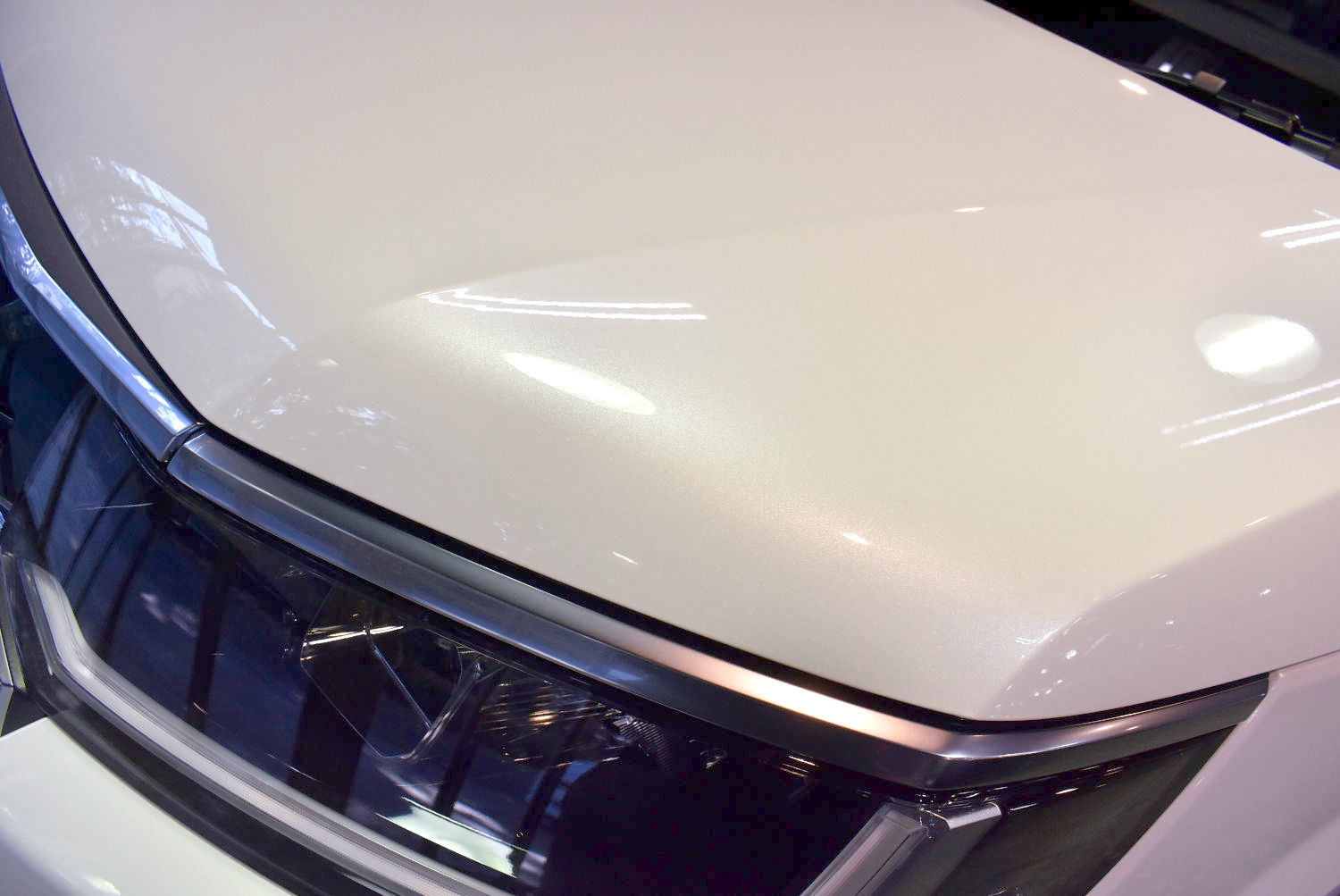 特に新車は美しい状態にすることも重要ですが、いかに塗装を削らずに膜厚を残しつつ美観を引き出すかも重要ですので、ボディへの負荷を極力抑えつつ効果を引き出す【Revolt Adjust System】という手法で丁寧に磨き上げます。