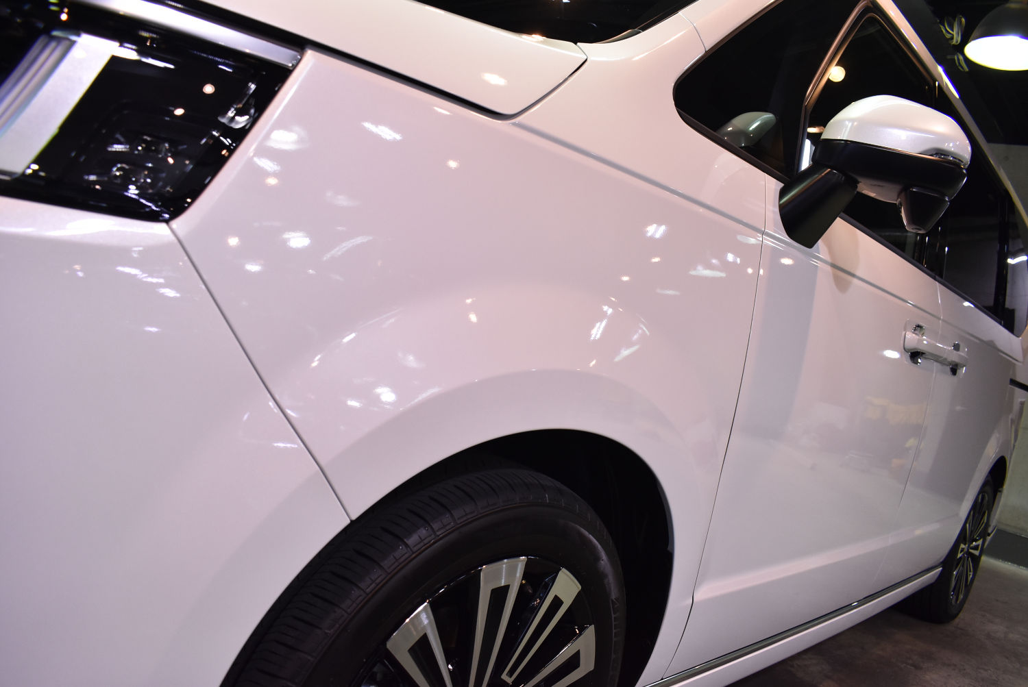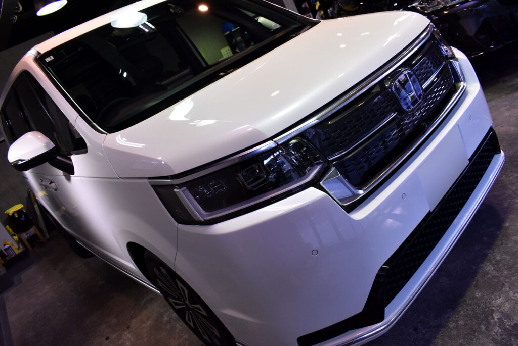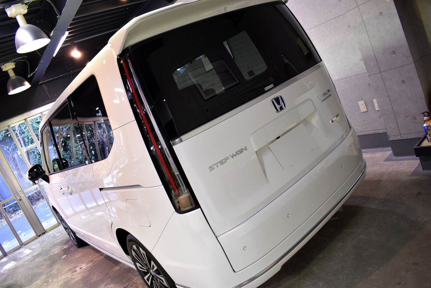 今となっては箱型ミニバンは当たり前のようにどこでも見かけますが、実用性だけでなく、楽しくお洒落でどこにでも出かけたくなる車として人気を博し、その幅を広めた一台がこのステップワゴンなのではないでしょうか。初代が登場した時はCMもとてもお洒落でしたね。そんなステップワゴンも代を重ねて進化を続け、今回施工させていただいたe:HEVではモーターの最高出力が180馬力以上もあって発進時や加速時にその威力を発揮します。静かで走りも良く、ハンドリングも気持ちよい仕上がりになっている他、ホンダ一の荷室スペースを誇る使い勝手の良さも十分です!