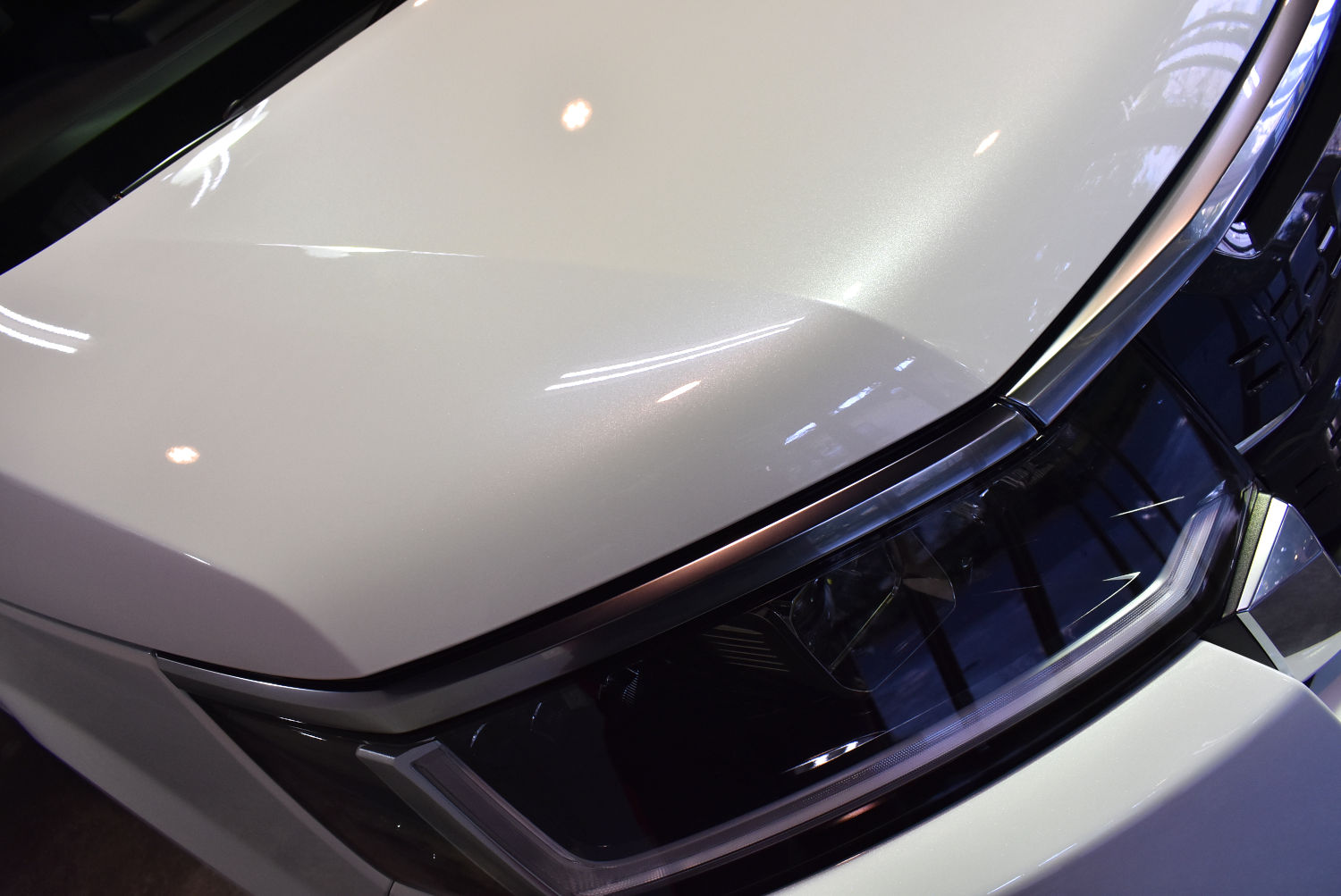 さて、今回施工させていただいたこちらのお車は、納車したての新車です。新車と言えば完璧な状態と思われがちですが、場合によっては所々の粗があったりします。例えばこの事例のセンターピラー等に用いられているピアノブラックのパーツ。ここはほぼ100%クスミや拭き傷があって、せめて新車時くらいはどうにかしたいもの。塗装の照りも少しボケた感じがあり、下地処理によって、より良い状態へと生まれ変わらせることから作業を始めます。