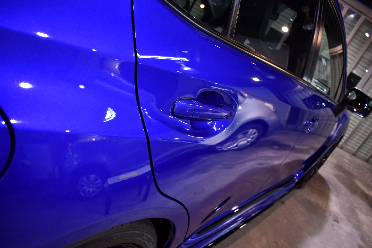 傷一つない新車状態というわけにはいきませんが、下地処理を終えたボディは当店の照明下でも美しいと感じるレベルまでリフレッシュすることができました。