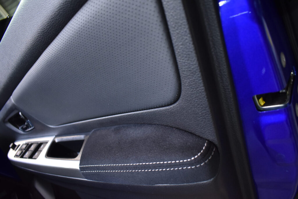 外装だけでなく、内装も綺麗に維持されたいとのことで、内装コーティングもご依頼頂いております。内装は外装と違って水やシャンプーを使って丸洗いできない割に、常に服や肌が触れる箇所でもあり、奇麗に維持するには防汚効果を高める必要があります。シートコーティング剤は素材の内側まで浸透して防汚効果を高めるので、大変お勧めなメニューの一つとなっております。